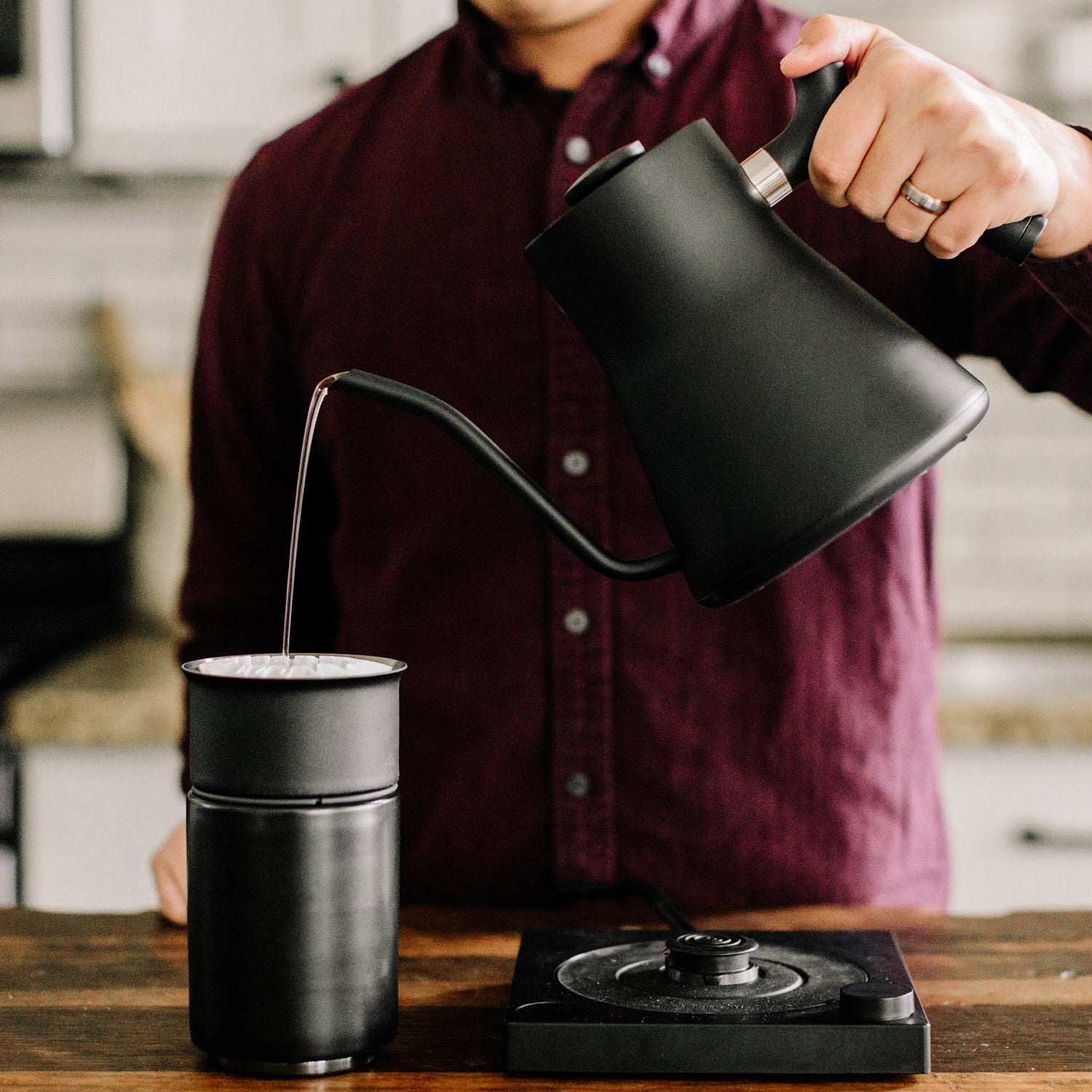 The Fellow Stagg EKG Kettle is the ultimate accessory for your pourover setup. With immaculate temperature accuracy and a restricted flow, its really easy to achieve a perfect, controlled pour to get the most out of your brew.