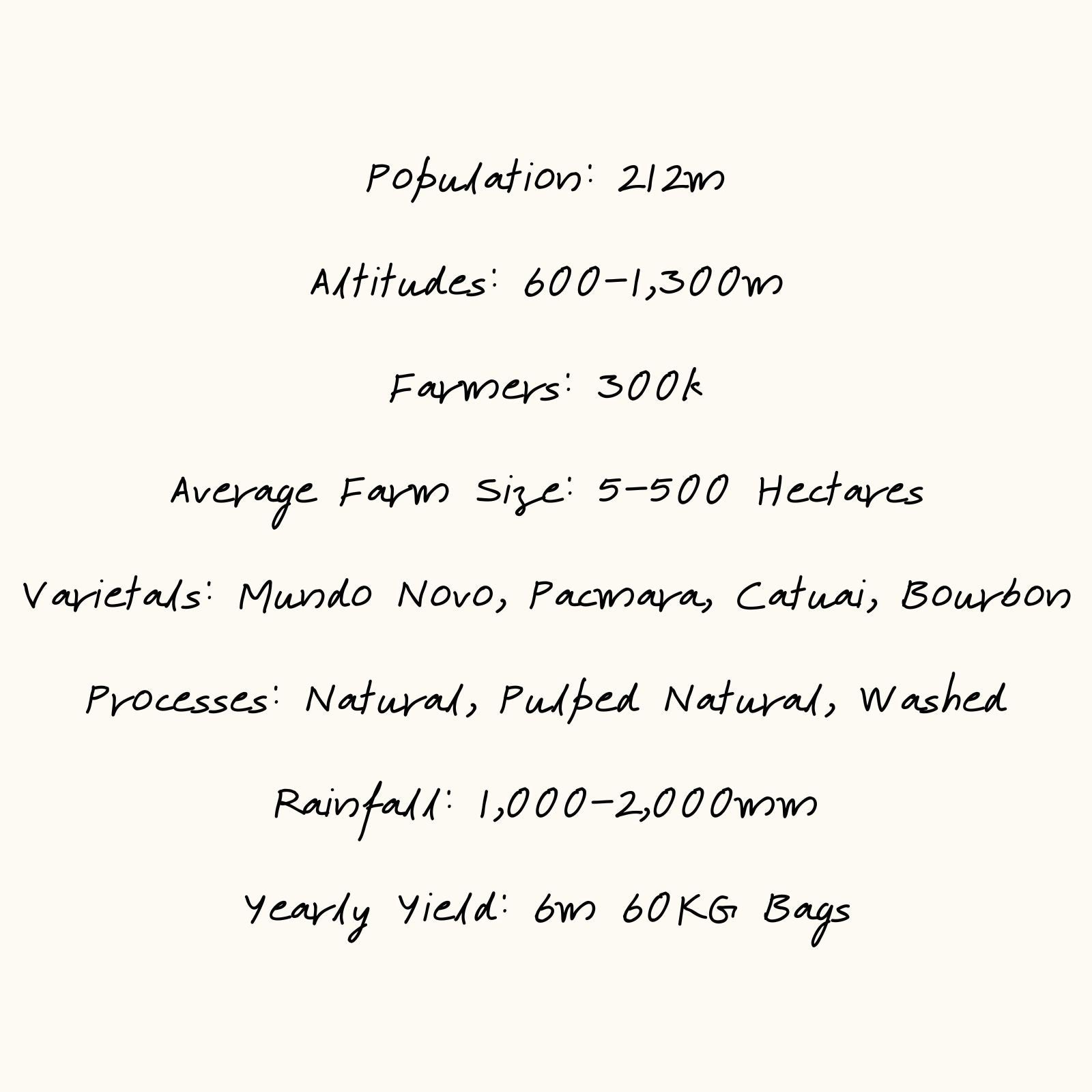 The country’s climate, shaped by the El Niño weather system, plays a major role in its coffee harvest. While Brazil generally receives 1,500mm of rainfall annually, fluctuations in this system can dramatically affect coffee yields. Coffee is grown mainly at altitudes of 600-1,300 metres and Brazil produces both Arabica and Robusta beans. For the 2024/25 marketing year, Arabica production is expected to reach 48.2 million bags, while Robusta production is forecast at 21.7 million bags.