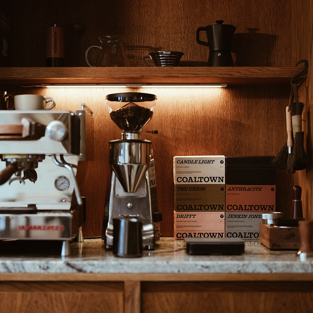Coaltown's award-winning specialty coffee blends including Candle Light No1, Anthracite No2, Black Gold No3, and The Union No4.