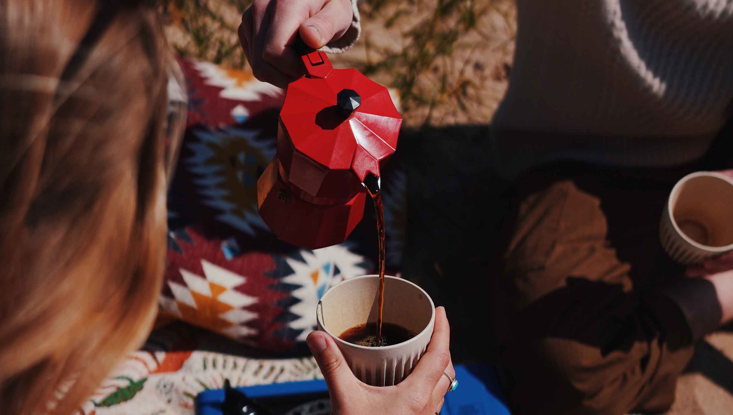 A stovetop coffee maker that brews coffee by passing boiling water pressurised by steam through ground coffee. Originally invented in Italy, it’s popular for making rich, espresso-like coffee at home.