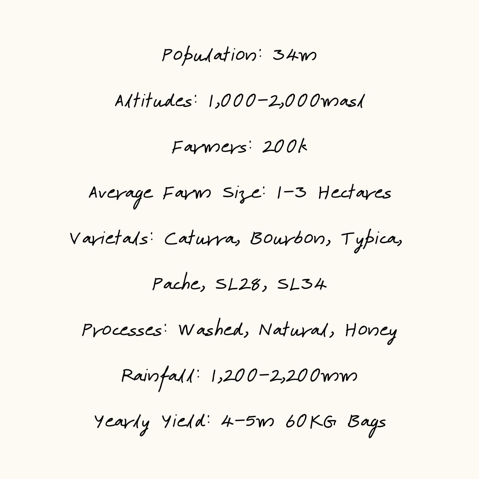 Peru is the ninth largest coffee producer globally and the third in South America. The country’s coffee farms are mostly small, often under 1-3 hectares and spread across three main regions: North (Amazonas, Cajamarca, San Martin), Central (Junin) and South (Cusco, Ayacucho, Puno). These areas sit on the eastern slopes of the Andes, at altitudes between 900 and 1800 metres, providing the perfect conditions for high-quality coffee.